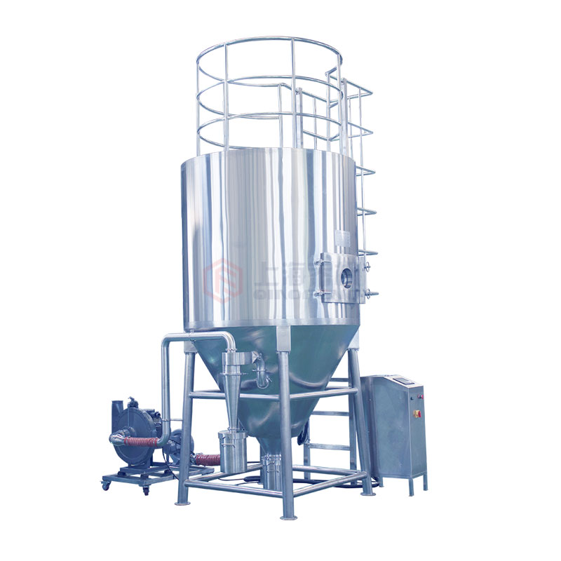 設(shè)備主要由:送料系統(tǒng)、加熱系統(tǒng)、干風(fēng)裝置、霧化系統(tǒng)、噴霧干燥系統(tǒng)、產(chǎn)品回收系統(tǒng)組成。