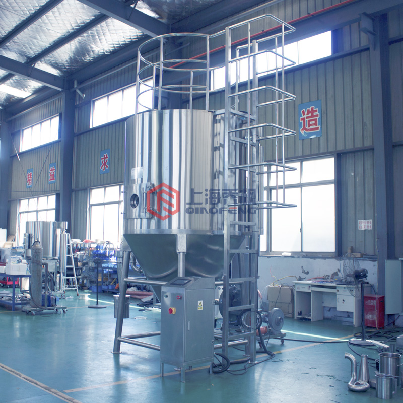 干燥塔包含:塔體、照明燈、氣體分布器、溫控設(shè)備、進(jìn)風(fēng)管路、出風(fēng)管路等部件,進(jìn)風(fēng)管路內(nèi)部需要設(shè)置過濾裝置;霧化后的漿料在熱空氣的加熱作用下,漿料完成揮發(fā)和干燥成為粉料落向底部的出料口,氣體從排風(fēng)管排除進(jìn)行閉路循環(huán)管路,干燥塔材質(zhì):304不銹鋼。